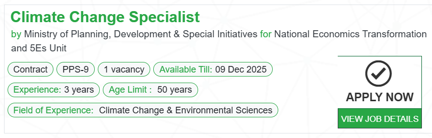 New listings appear weekly. Searching for “climate change specialist jobs in pakistan full time since yesterday” or “in the last 3 days” helps find the latest opportunities. Major recruitment drives often happen quarterly.