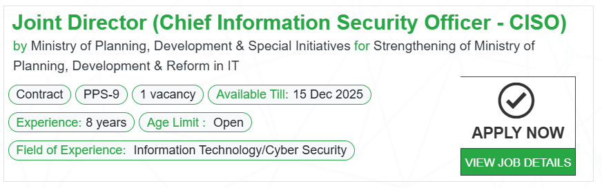 For the most current listings like joint director (ciso) jobs in pakistan since yesterday, regularly check FPSC’s website, LinkedIn job alerts with relevant keywords, and the career pages of major financial institutions and tech corporations.