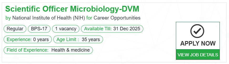 Hey DVMs with a microbiology focus! Want a great career in Pakistan’s public health scene? Being a Scientific Officer is super important, and there are jobs open now – think NIH Islamabad and more. I’ve got you covered, whether you’re looking for full-time, contract, or even just an internship. Let’s get your career going!